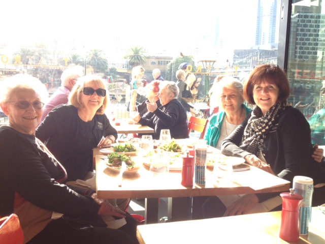 Saturday, Steve, Patti and Robbie went to the temple.  Steve and Robbie did baptisms and Patti did initiatory.  We picked them up and headed to the city for the day.  We basically ate our way through the day.  We had just finished brunch and were walking when Robbie spotted a Lindt chocolate store.  We went in and he got a waffle with ice cream and salted caramel sauce.  We walked along the Yarra River and then wandered the rest of the afternoon.  Patti, Adrienne and I bought a pair of shoes.  Two hours later Steve and Robbie bought a Schnitz sandwich to eat. Schnitzel is very popular here in Melbourne.  Two hours later we were eating dinner at an Italian restaurant near our flat.  OINK OINK OINK